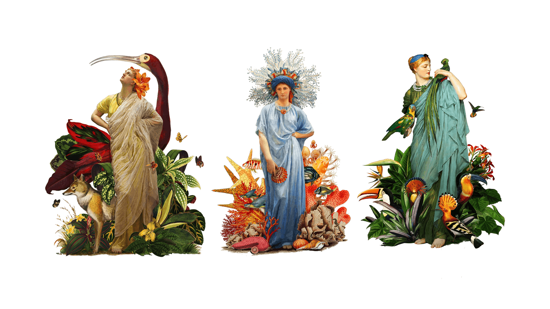 • Cybele: the eastern goddess adopted by the Romans, embodies the wild, vegetal power of nature. Various birds and tropical plants live in harmony around her.