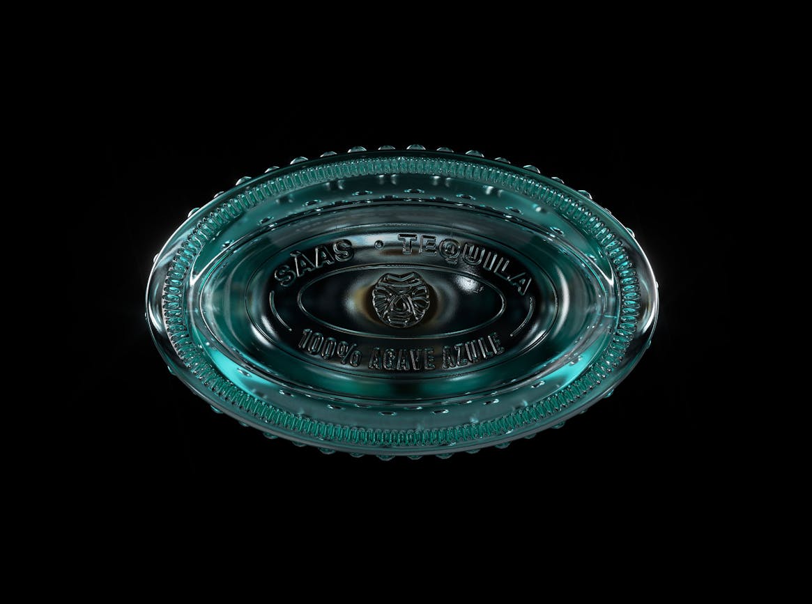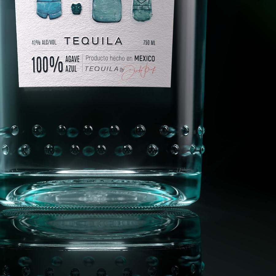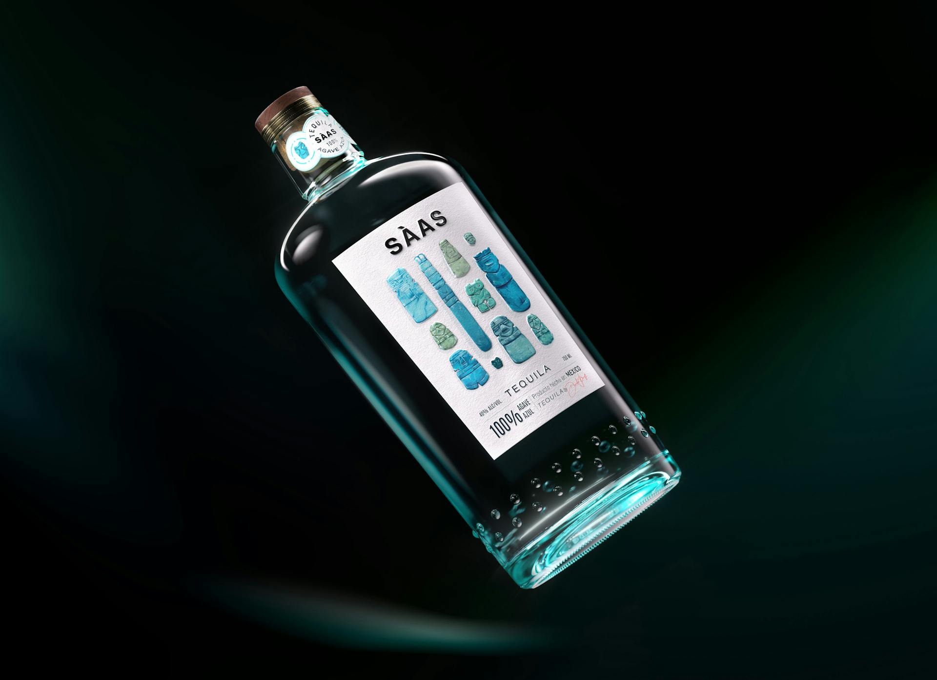 "Lineal" SAAS typography counter-points two languages: contemporary texts and illustrations taken from pre-classical civilizations...The colorimetric dominance of the emerald green hue of the illustrations matches the color of the glass bottle. Imperfections with contrasting reliefs are reflected in the choice of patterns inlaid in the glass, exploiting the particular pigmentation of the agave stems.