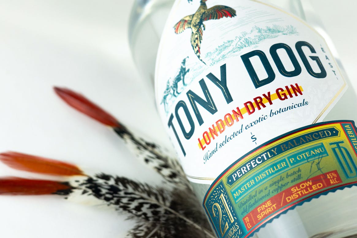 Tony Dog : an unusual gin that brings together the flavors of sunset, juniper, lemon, orange from Italian orchards, rose petals from Romania, and the scents of the Far East.