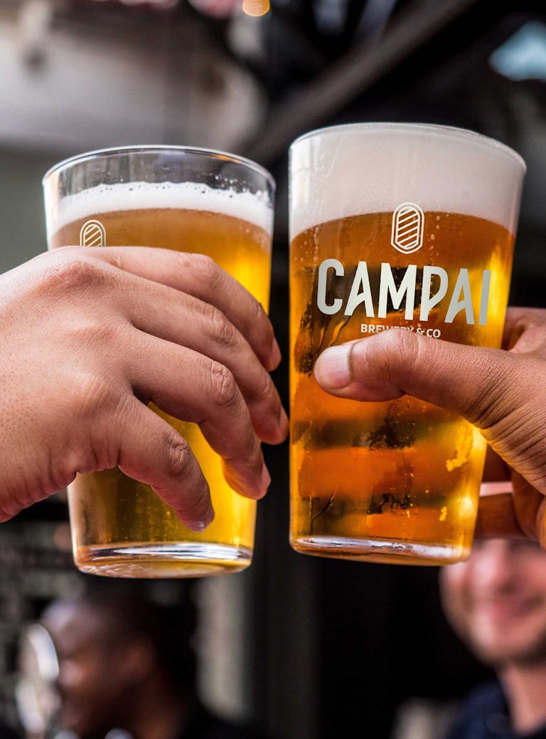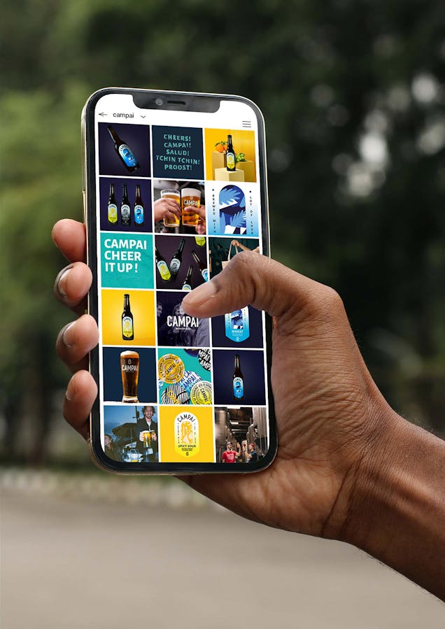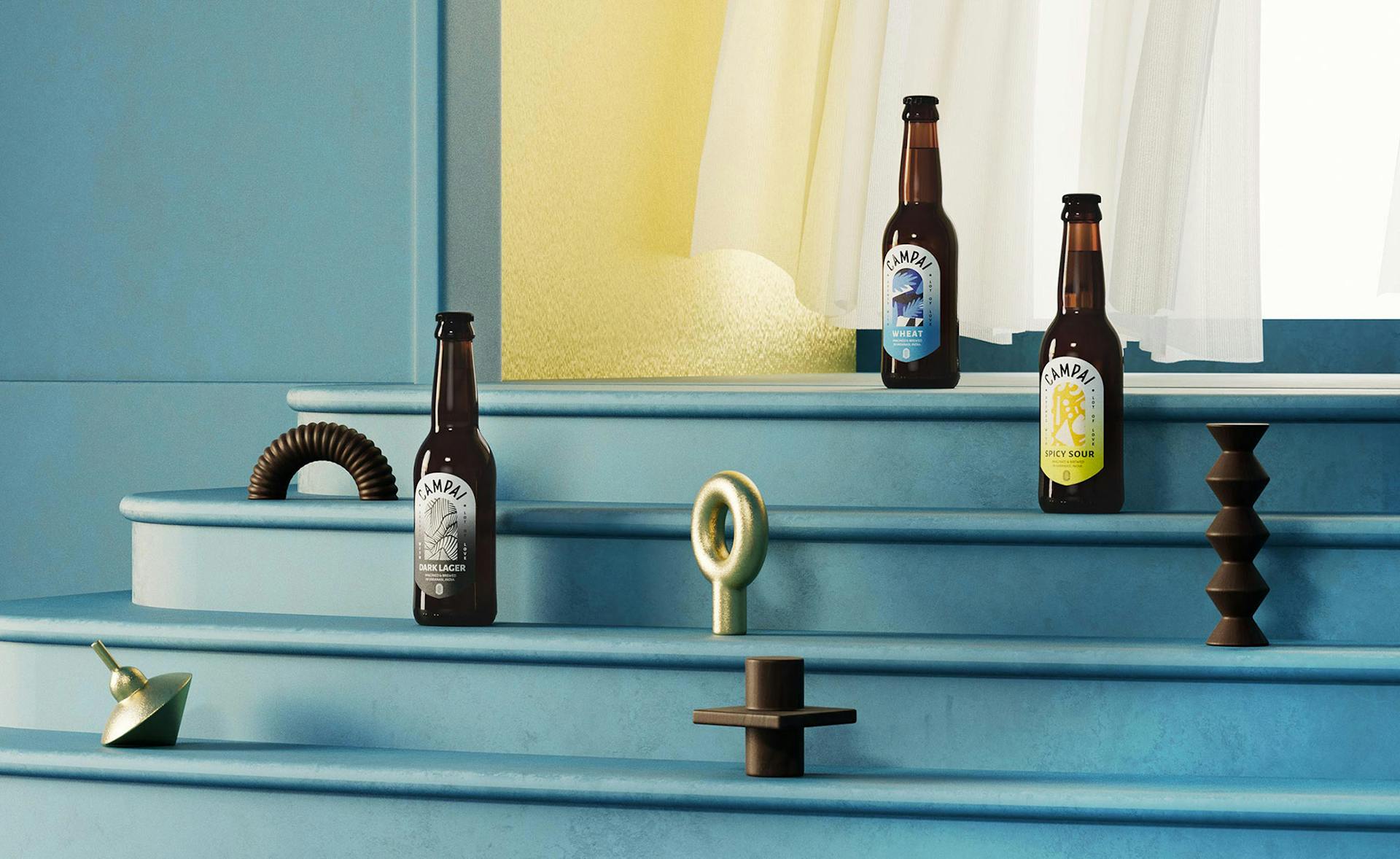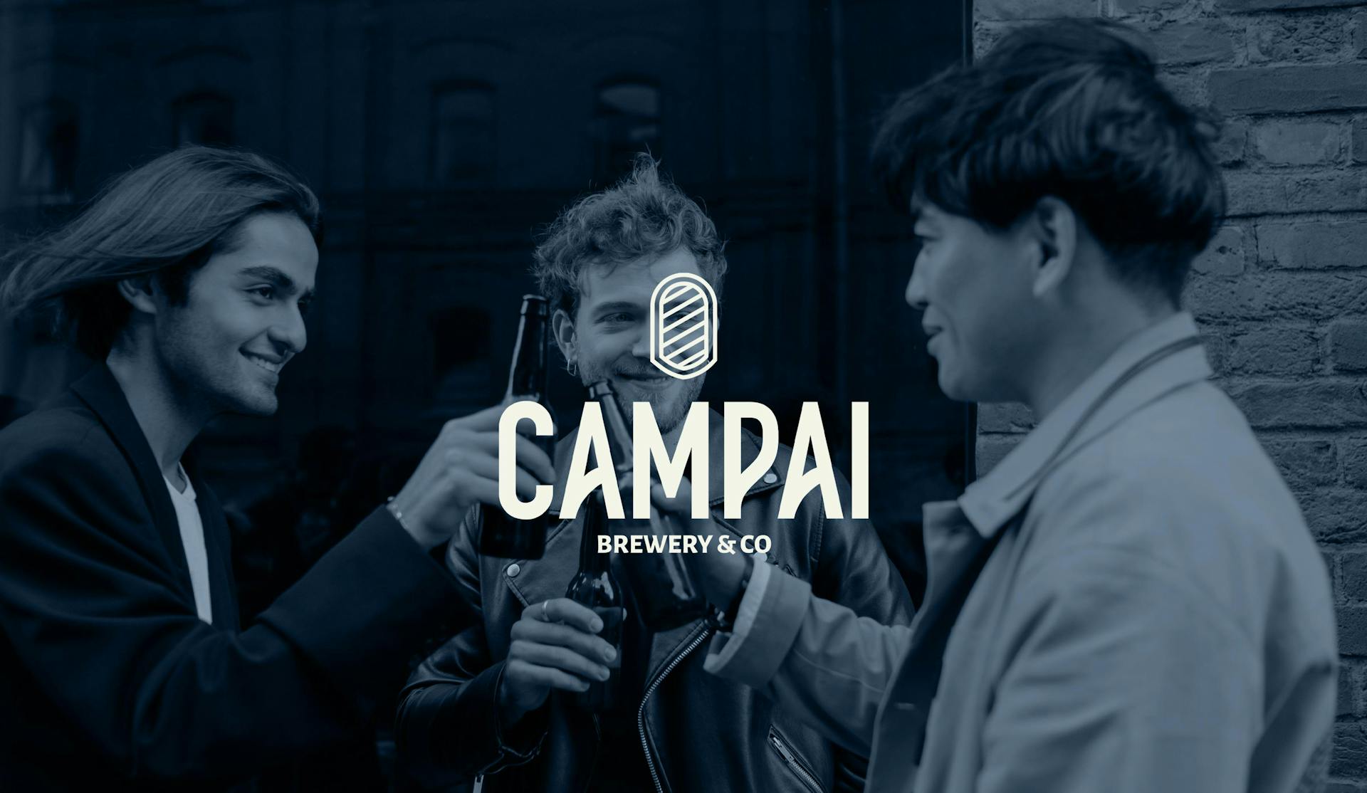La gamme Campai, traduction de tchin-tchin, symbole de la convivialité internationale, s’articule autour de trois références de bières aux caractéristiques gustatives propres et un graphisme facilement identifiable. Le concept graphique reprenant le principe d’une composition de juxtaposition d’information ou de grands blocs de textes, réunis en son centre un visuel abstrait.