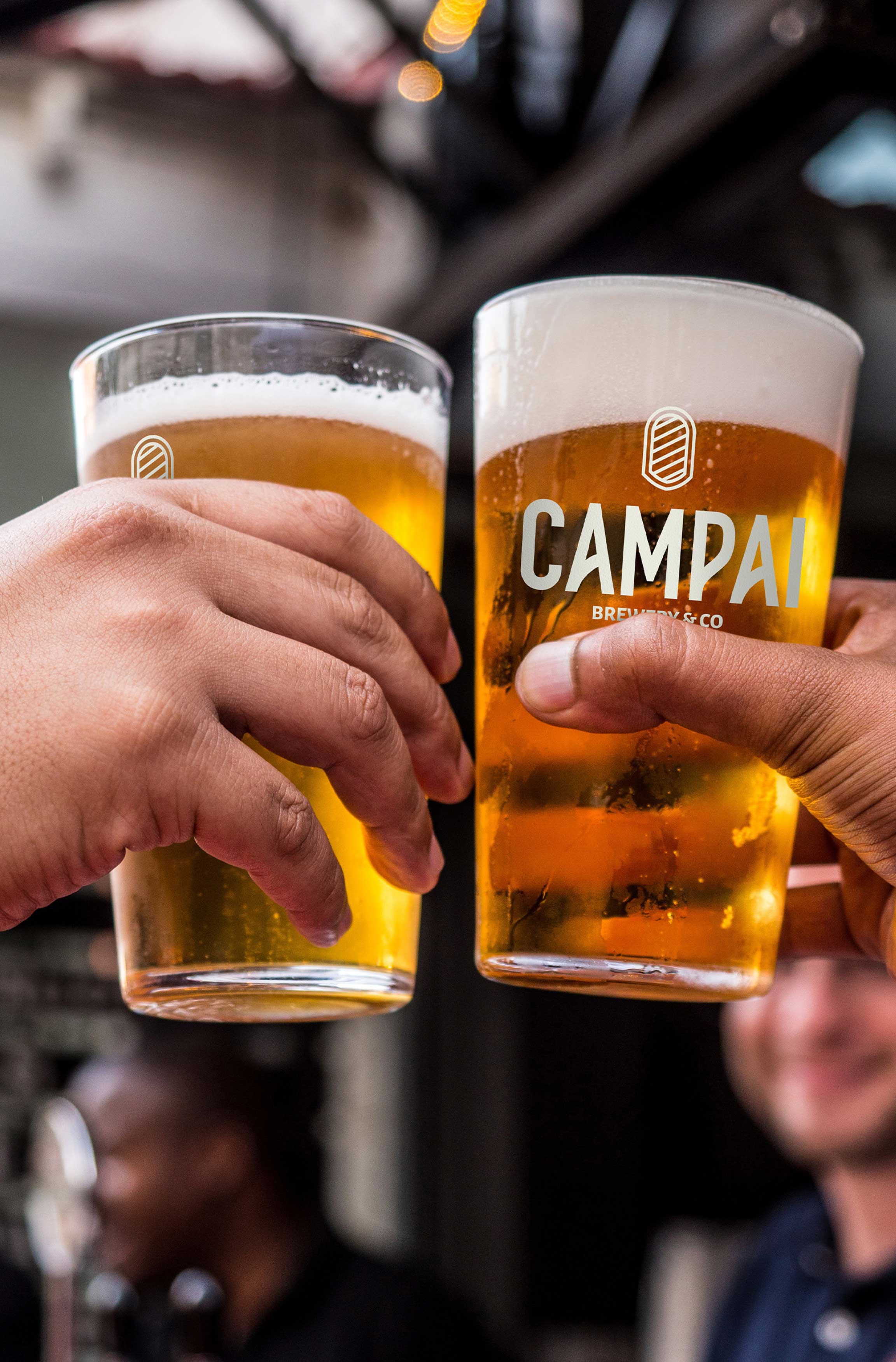 La gamme Campai, traduction de tchin-tchin, symbole de la convivialité internationale, s’articule autour de trois références de bières aux caractéristiques gustatives propres et un graphisme facilement identifiable. Le concept graphique reprenant le principe d’une composition de juxtaposition d’information ou de grands blocs de textes, réunis en son centre un visuel abstrait.